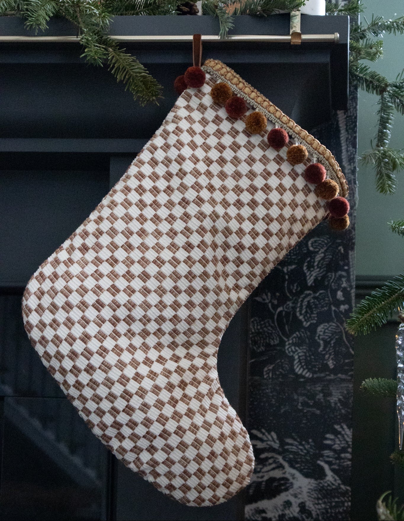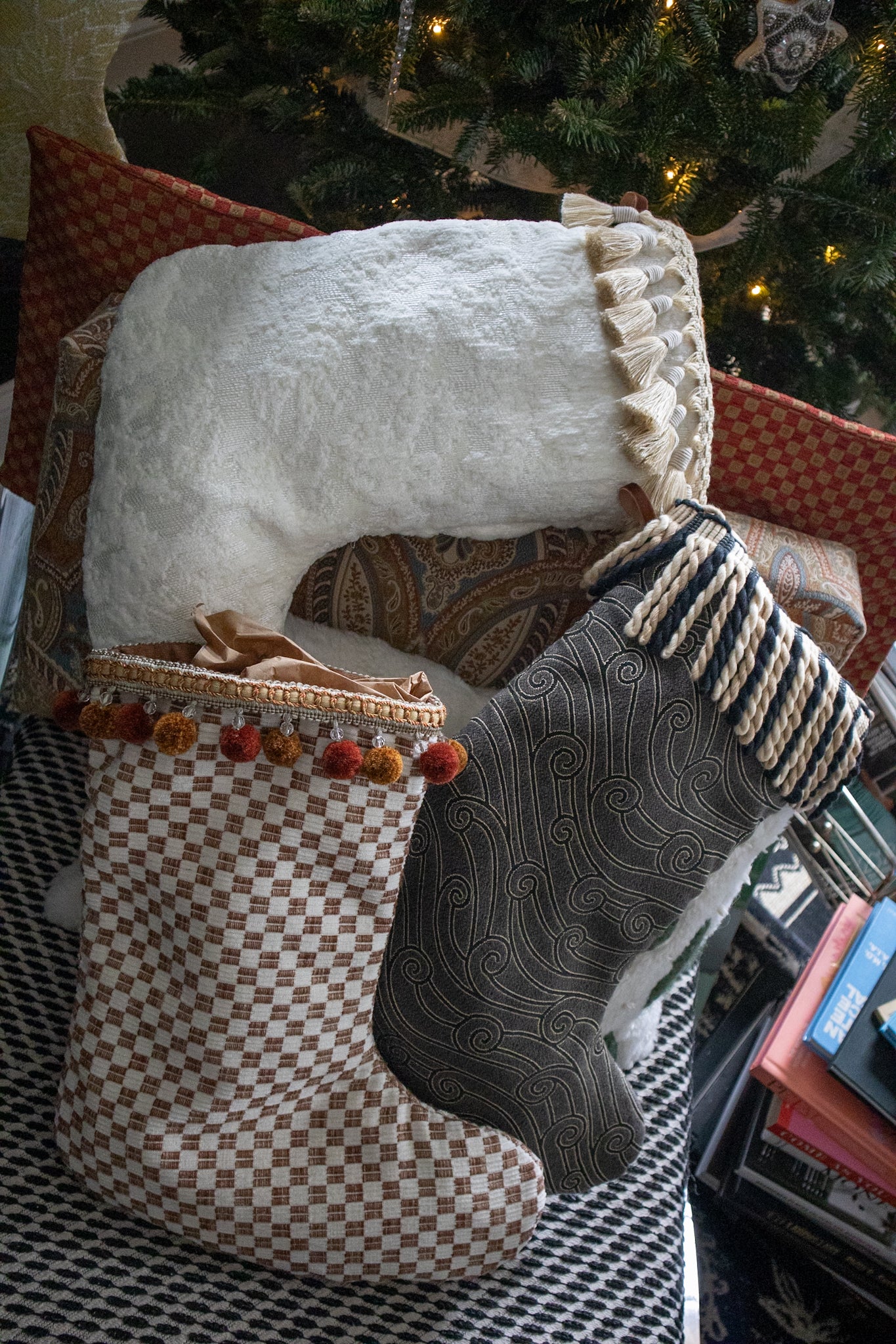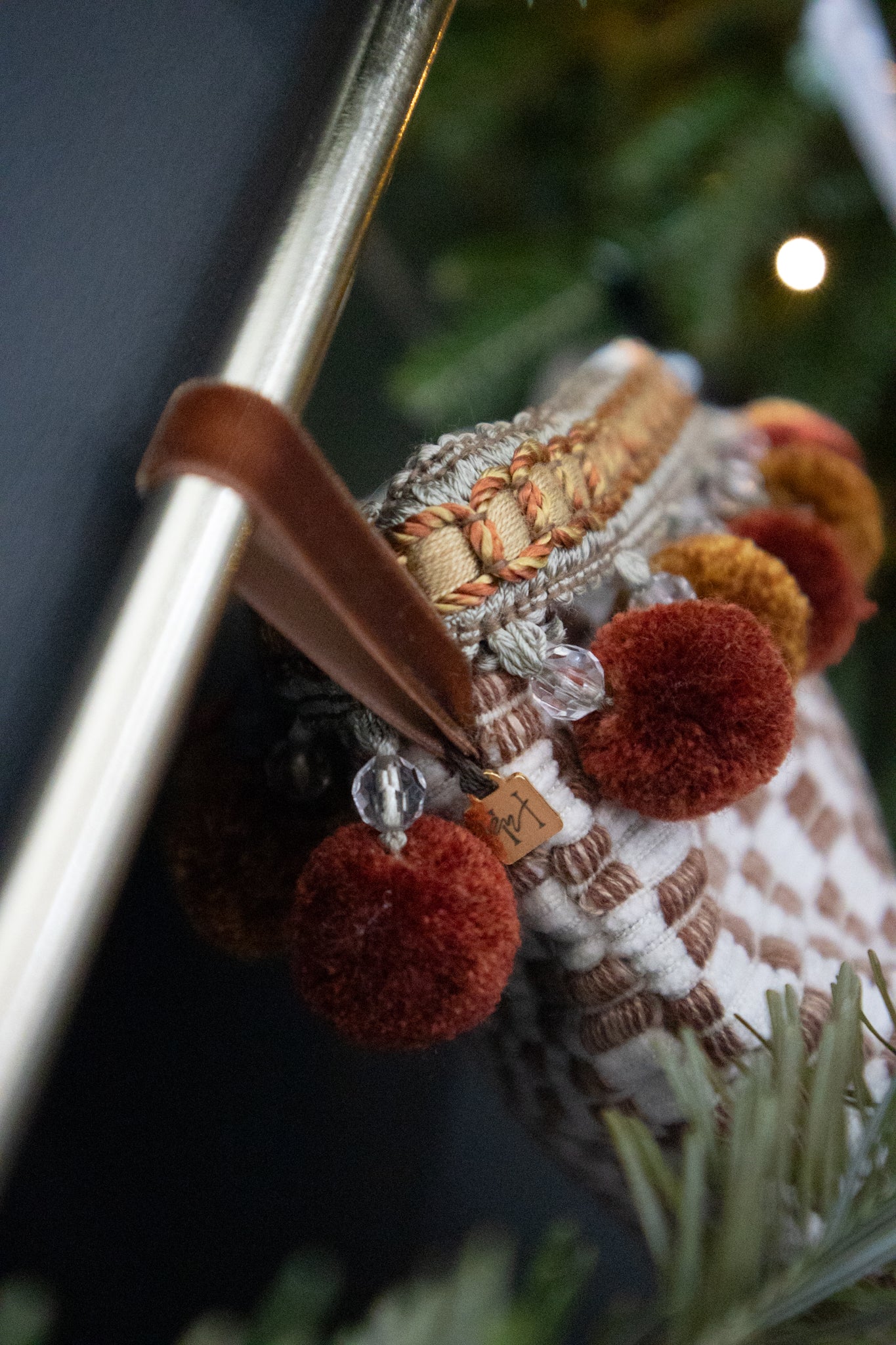 All stockings are handmade using a mix of carefully curated materials. Each one has a unique high quality inner lining, a seasonal hand sewn trim, and a signature by Honey charm. Your stocking purchase will also include a handmade by Honey dust bag to ensure its longevity.