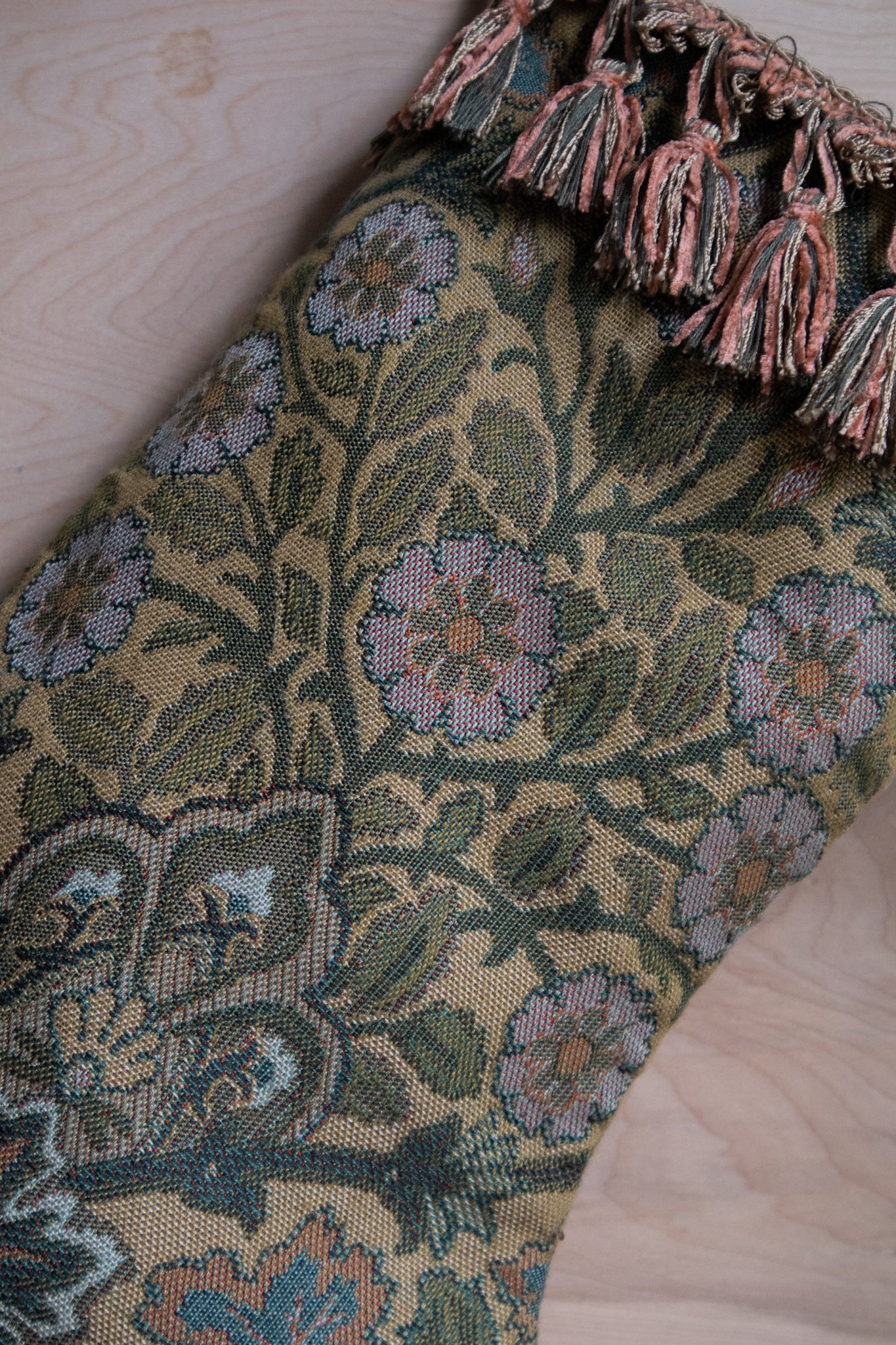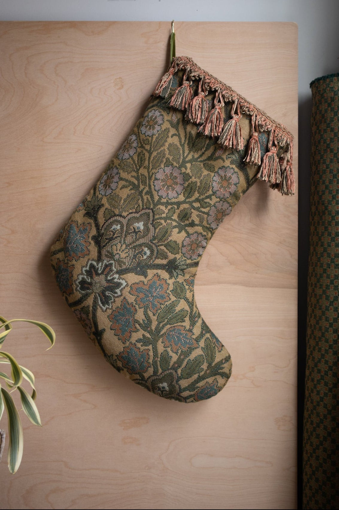 All stockings are handmade using a mix of carefully curated materials. Each one consists of a unique high quality inner lining, a seasonal hand sewn trim, and a signature by Honey charm. Your stocking purchase will also include a handmade by Honey dust bag to ensure its longevity.