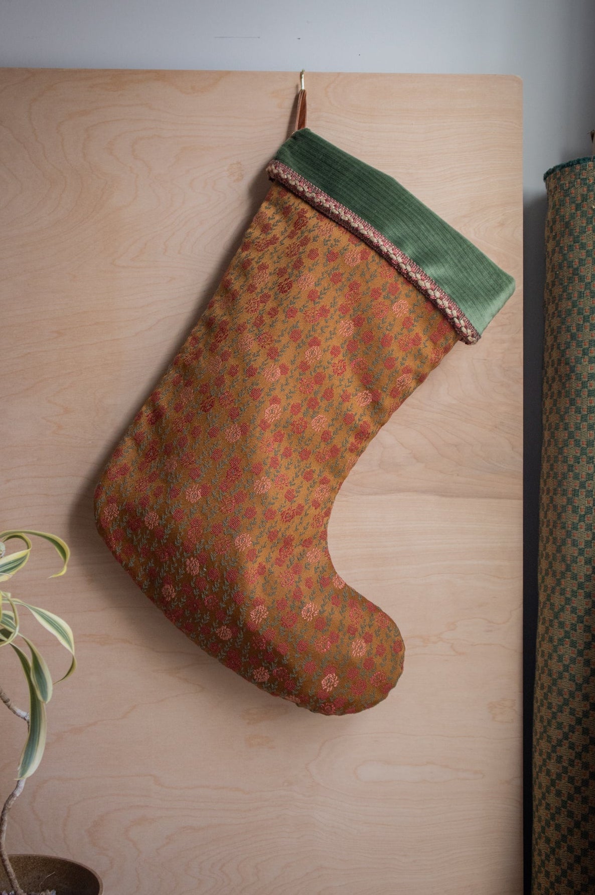 All stockings are handmade using a mix of carefully curated materials. Each one consists of a unique high quality inner lining, a seasonal hand sewn trim, and a signature by Honey charm. Your stocking purchase will also include a handmade by Honey dust bag to ensure its longevity.