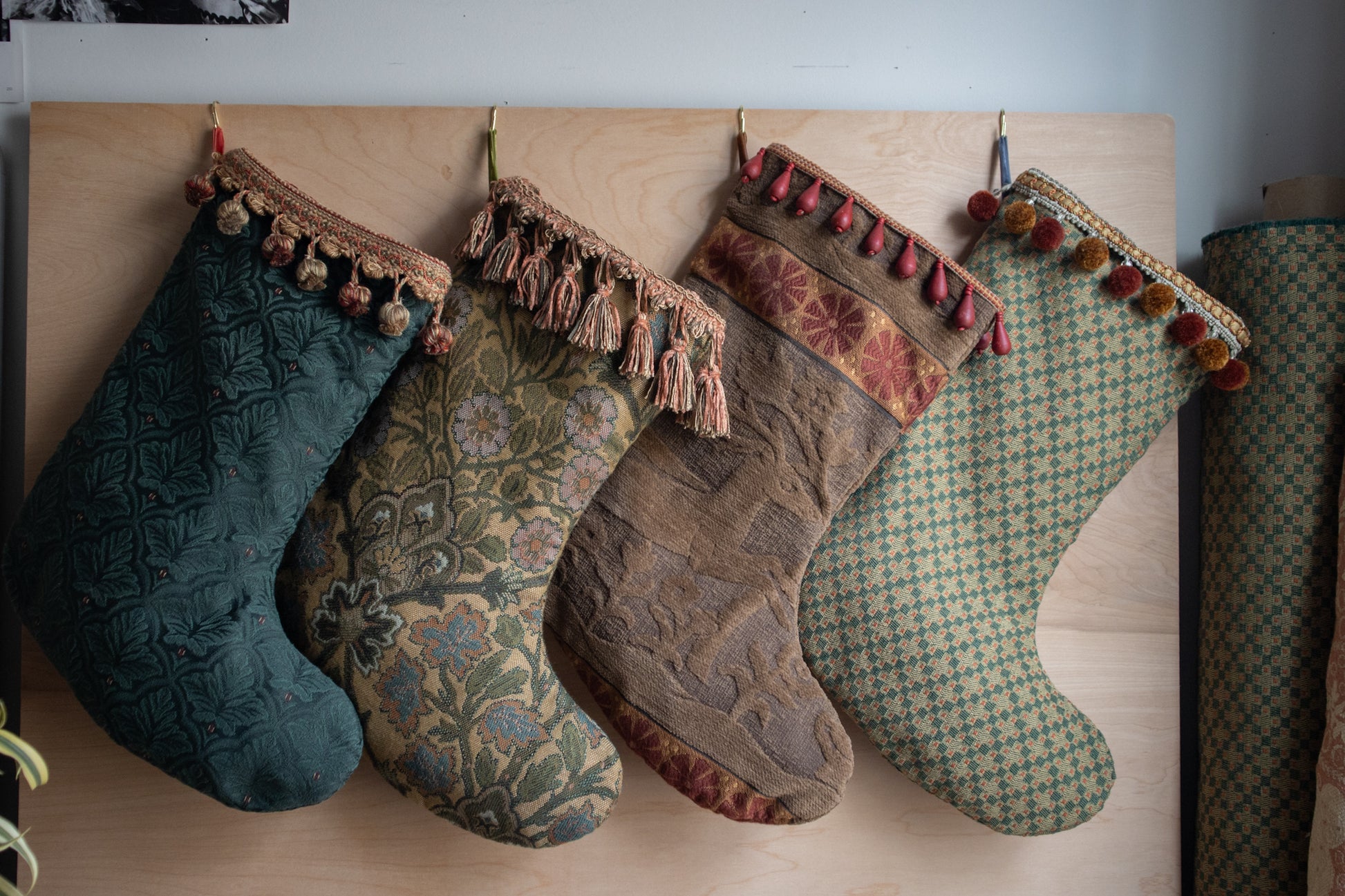 All stockings are handmade using a mix of carefully curated materials. Each one consists of a unique high quality inner lining, a seasonal hand sewn trim, and a signature by Honey charm. Your stocking purchase will also include a handmade by Honey dust bag to ensure its longevity.